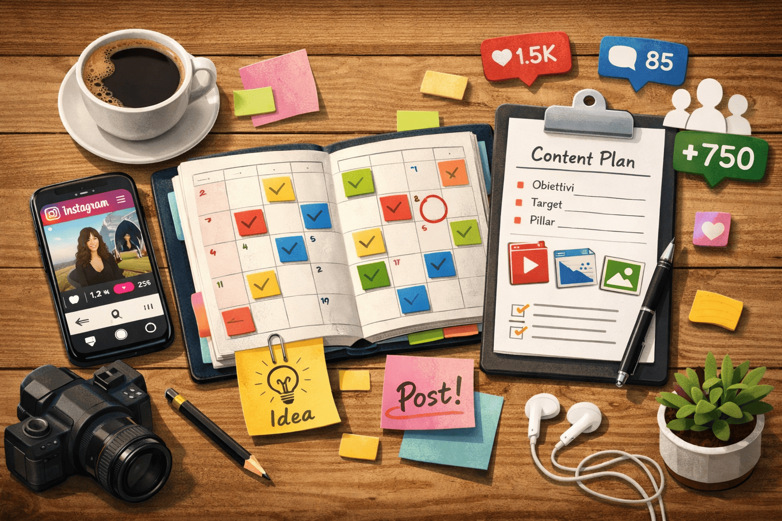 Un calendario editoriale Instagram è lo strumento che ti aiuta a programmare con anticipo i contenuti che pubblichi sul profilo, così da mantenere ordine, costanza e visione strategica. Con un calendario definisci cosa pubblicare, quando pubblicarlo, con quale formato e con quale obiettivo. Questo approccio ti permette di crescere su Instagram in modo più consapevole, evitare lunghi periodi senza contenuti e costruire un profilo che parla al pubblico giusto con il ritmo giusto, aumentando qualità e continuità.